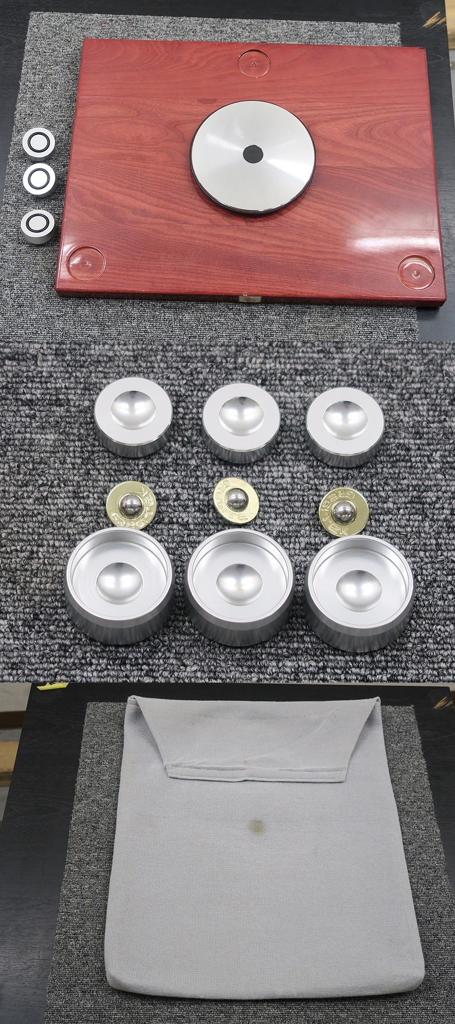 商品は本体、インシュレーター(3セット)、ソフトケースです。