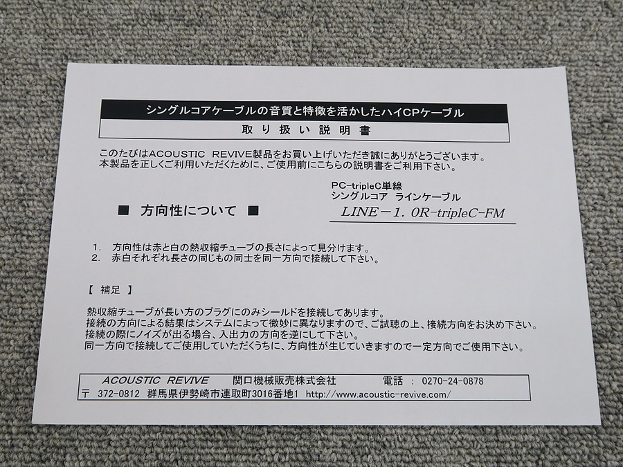アコリバ Acoustic Revive LINE-1.0R-tripleC-FM RCAケーブル 元箱付 @45805