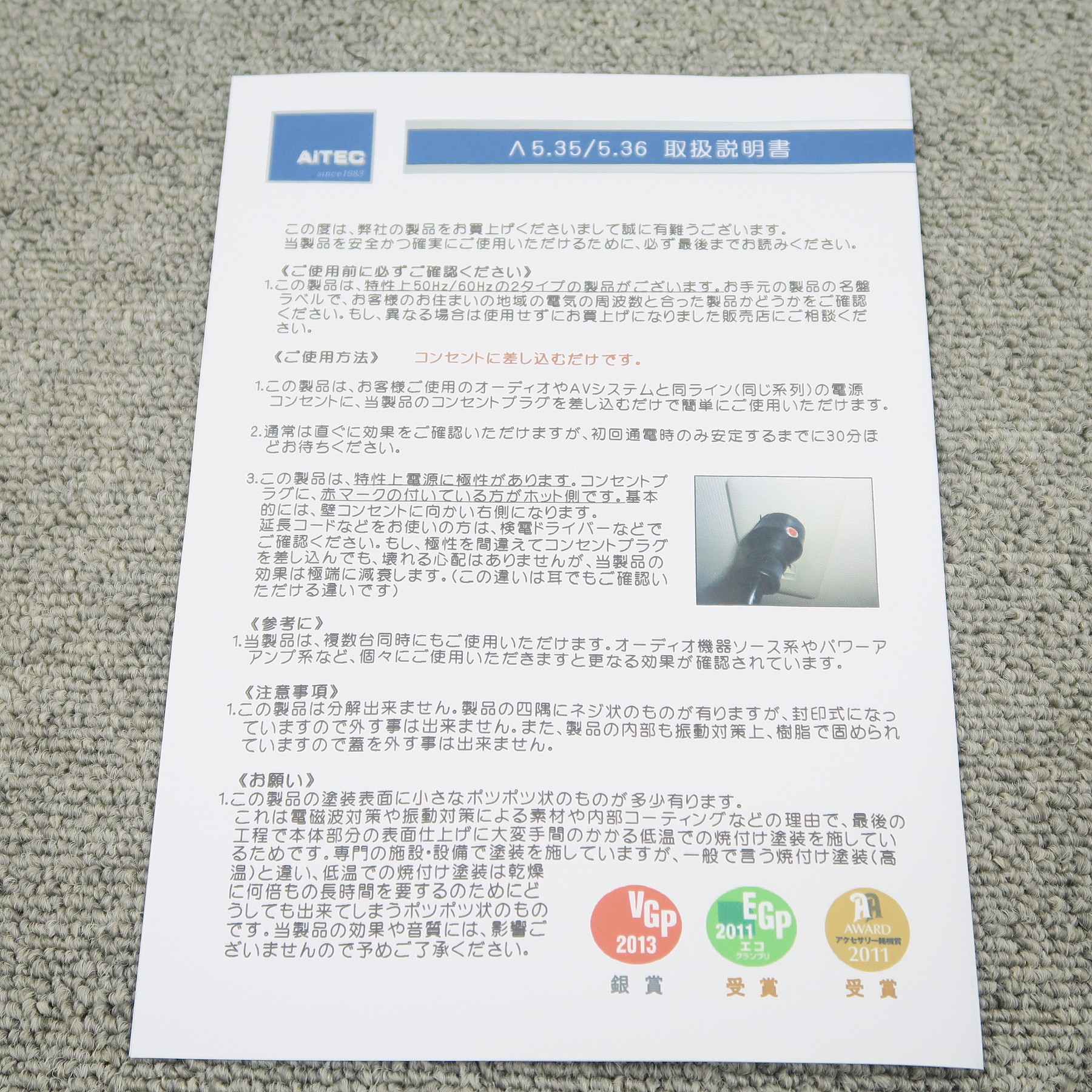 【未使用】アイテック AiTEC Λ5.35 50Hz専用 電源フレッシャー @53832