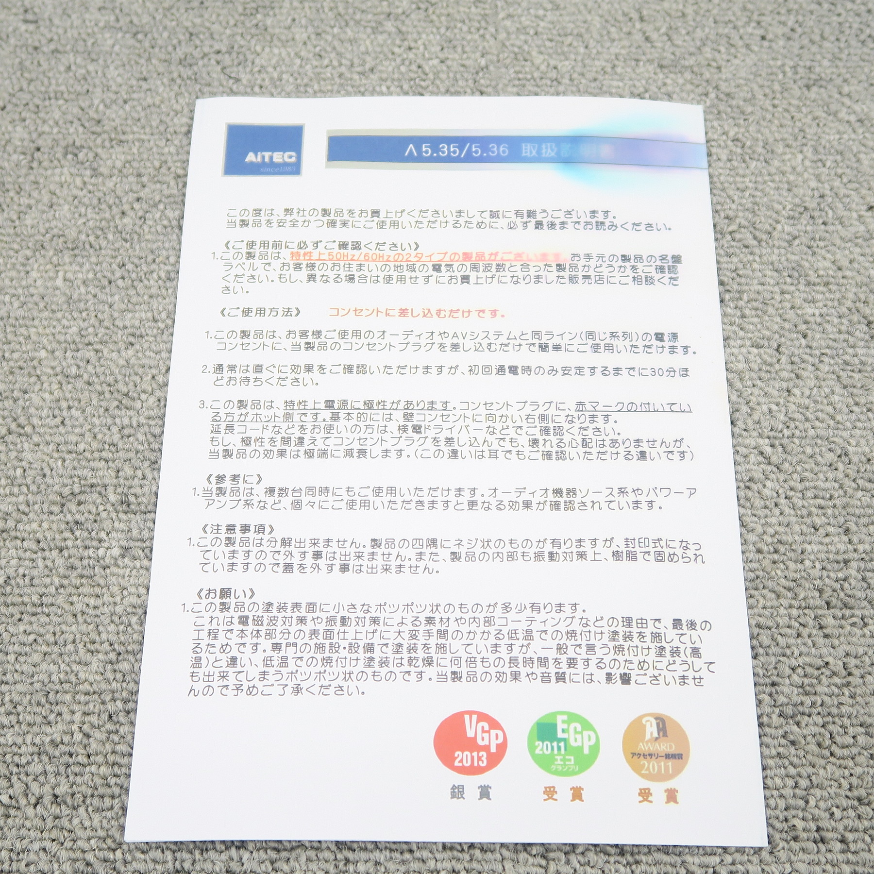 【未使用】アイテック AiTEC Λ5.35 50Hz専用 電源フレッシャー @53852