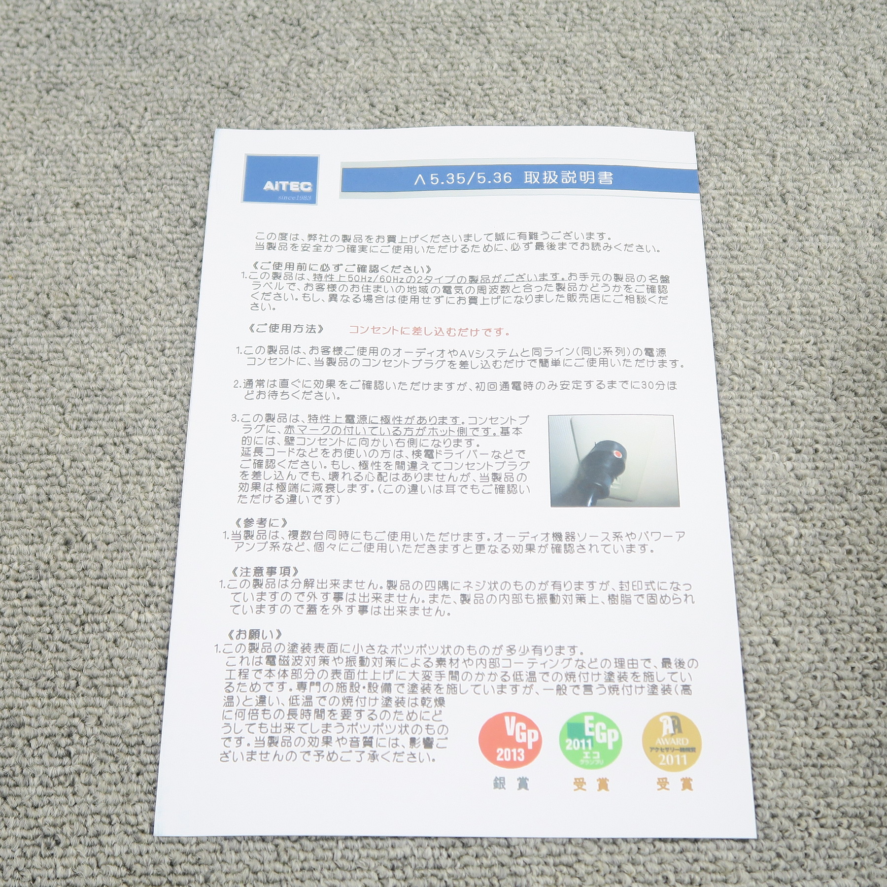 【未使用】アイテック AiTEC Λ5.35 50Hz専用 電源フレッシャー @53826