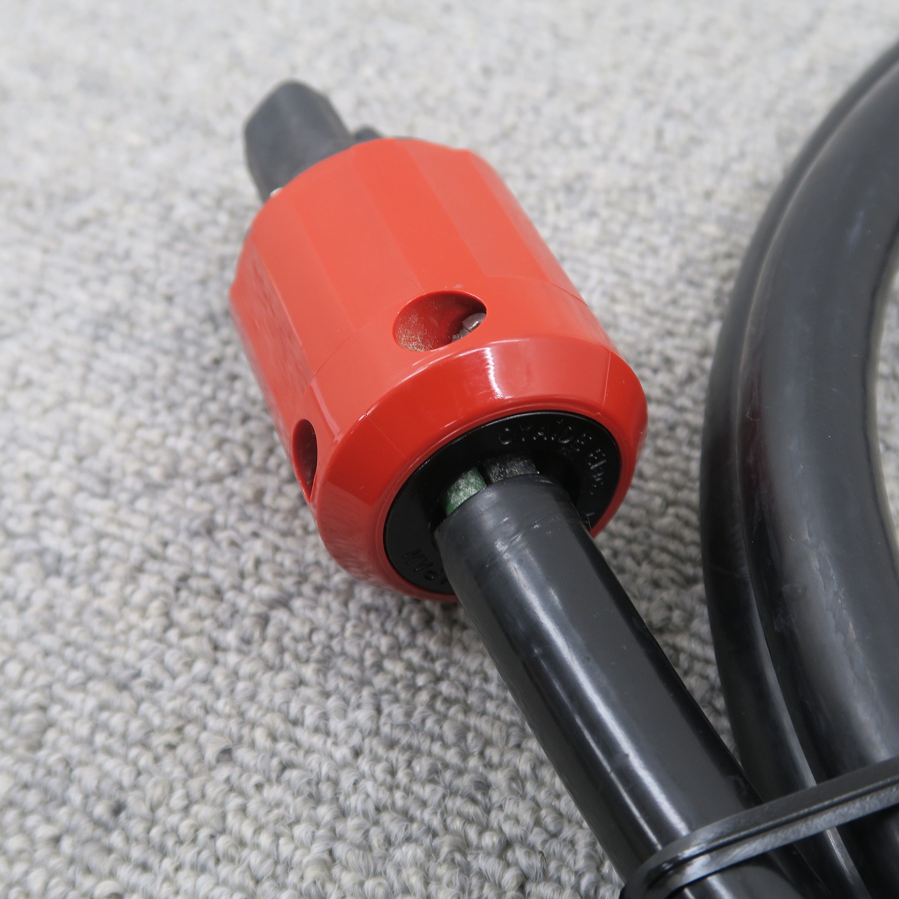 外皮チューブが収縮のため、片側コネクタ根本部分から内部線の被膜が見えています。
