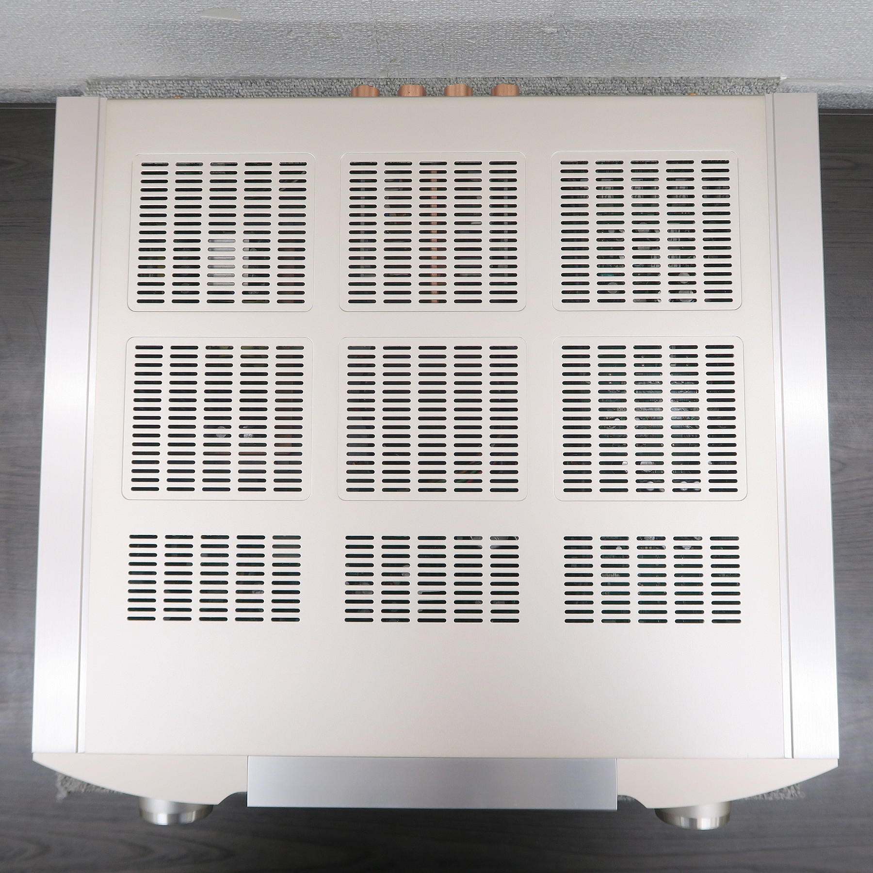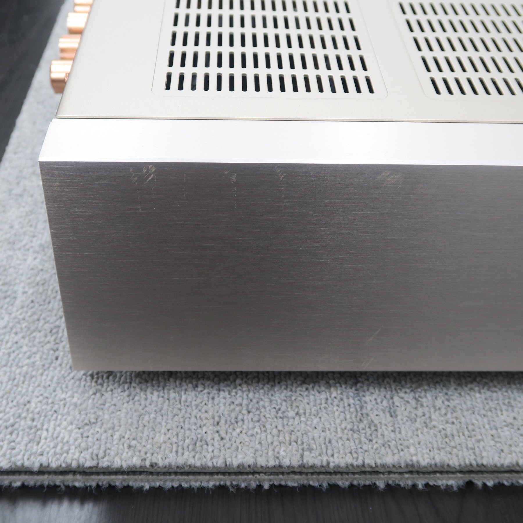 商品管理には万全を期しておりますが、展示中及び保管中に小さな傷などが付いてしまう可能性があります。予めご了承ください。※商品に固定されていない、電源コードやジャンパーなどの付属品は、純正品ではない可能性があります。可能な限り確認し記載する様に努めておりますが、純正品である保証は致しかねます。また、画像にある物が商品の全てです。付属品、外装状態などは、現状優先になりますので必ず画像で確認してください。商品の傷、日焼け、汚れなどの状態は、可能な限り記載するように努めておりますが、見落とすこともあります。商品状態の全てを完璧に記載することは現実的ではありません。ですので、商品の状態は必ず拡大画像で確認してください。拡大画像で確認できる傷、日焼け、汚れなどは、一切返品理由にはなりません。また、拡大画像でもわかりにくい程度の軽微な傷、日焼け、汚れなどを理由とした返品も一切受け付けておりません。画像にある物が商品の全てです。撮影していない内部や底部などの傷、汚れ、ビスの不備、ボンドの剥がれ。経年変化による劣化。これら、オーディオ機器として機能上問題のない箇所についても保証対象にはなりません。