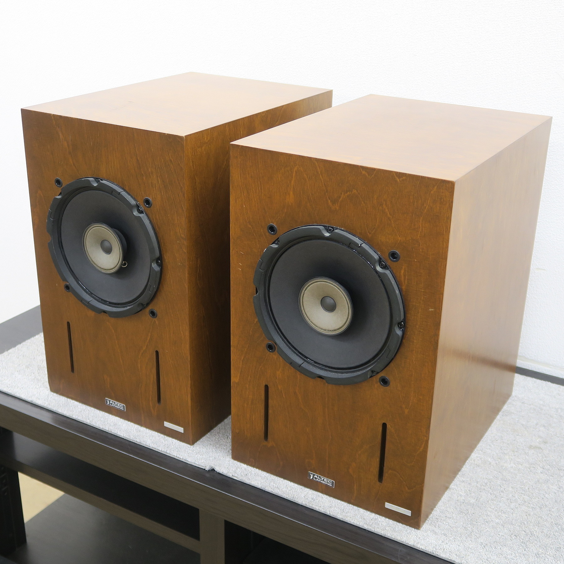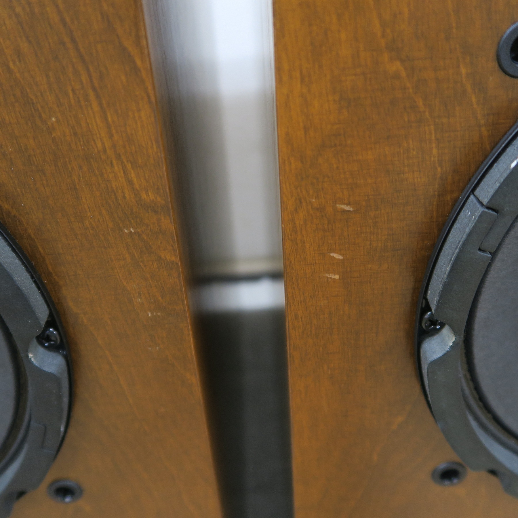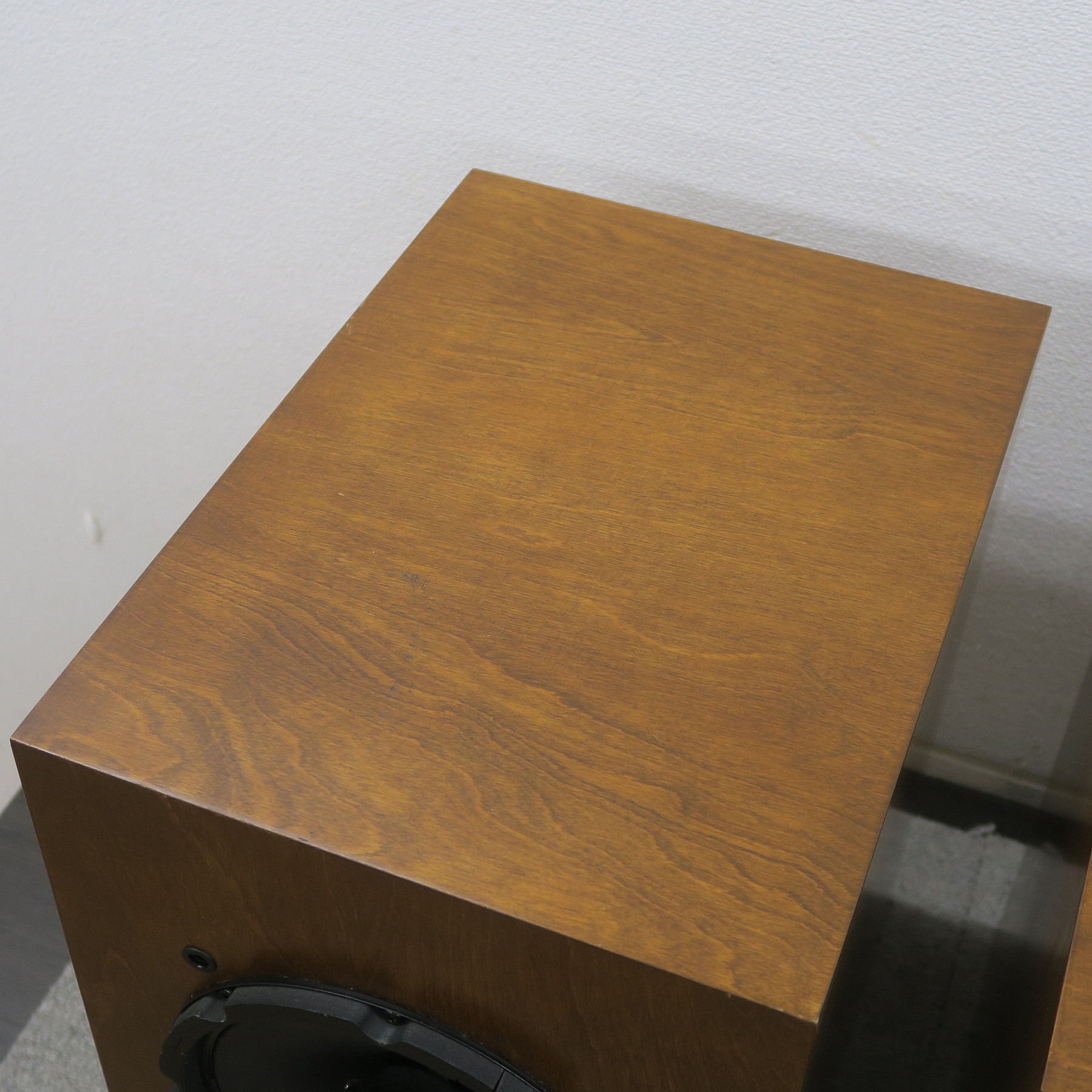 片側スピーカーフロントの左下にハガレ、天面に経年により木目の部分に塗装ワレが薄くあります。