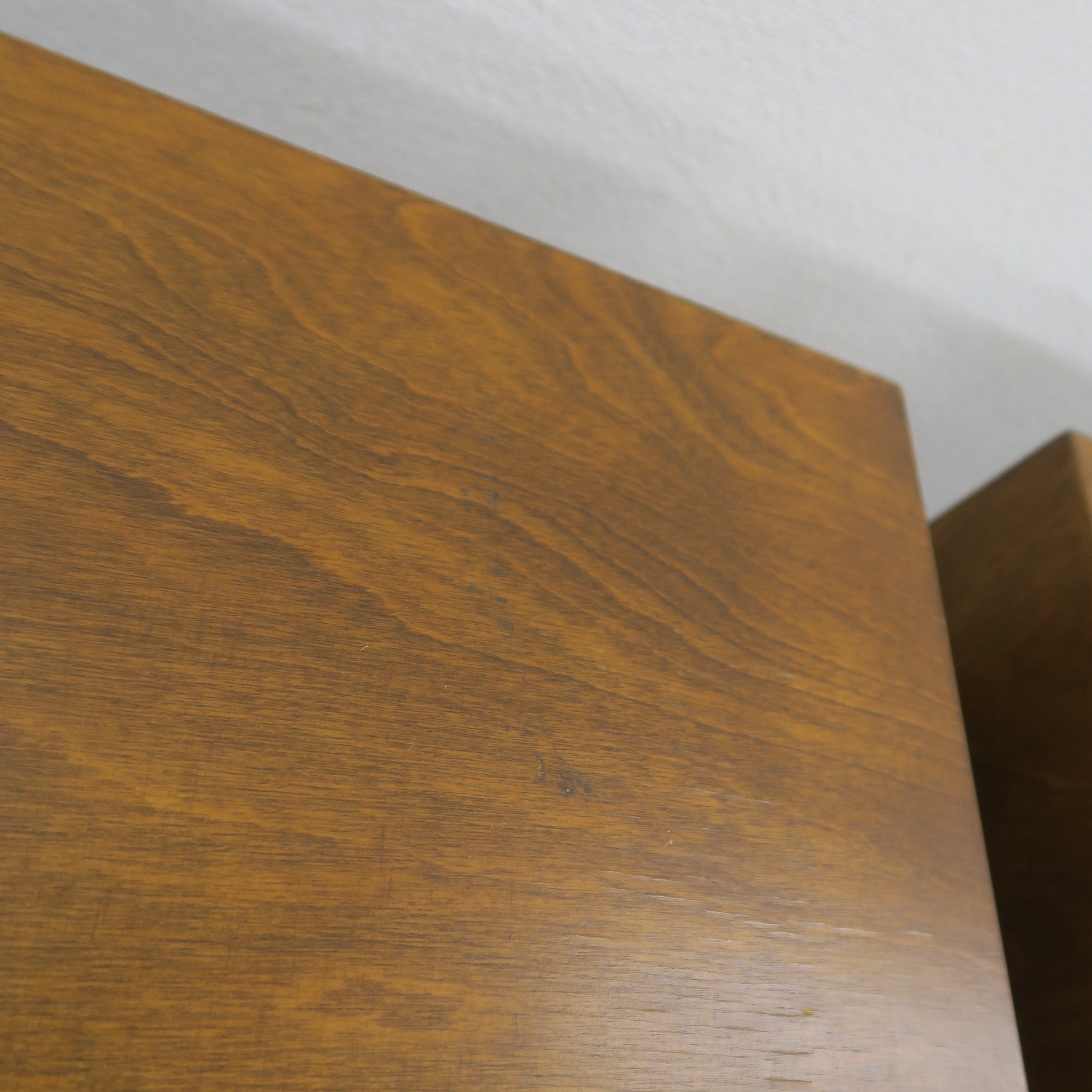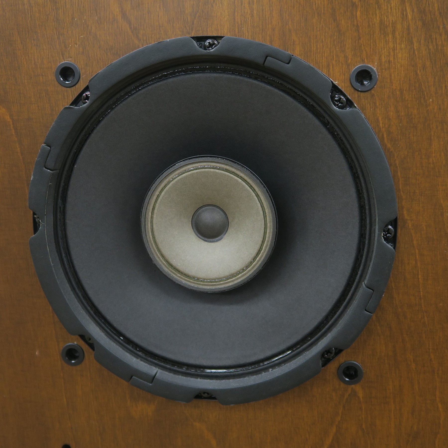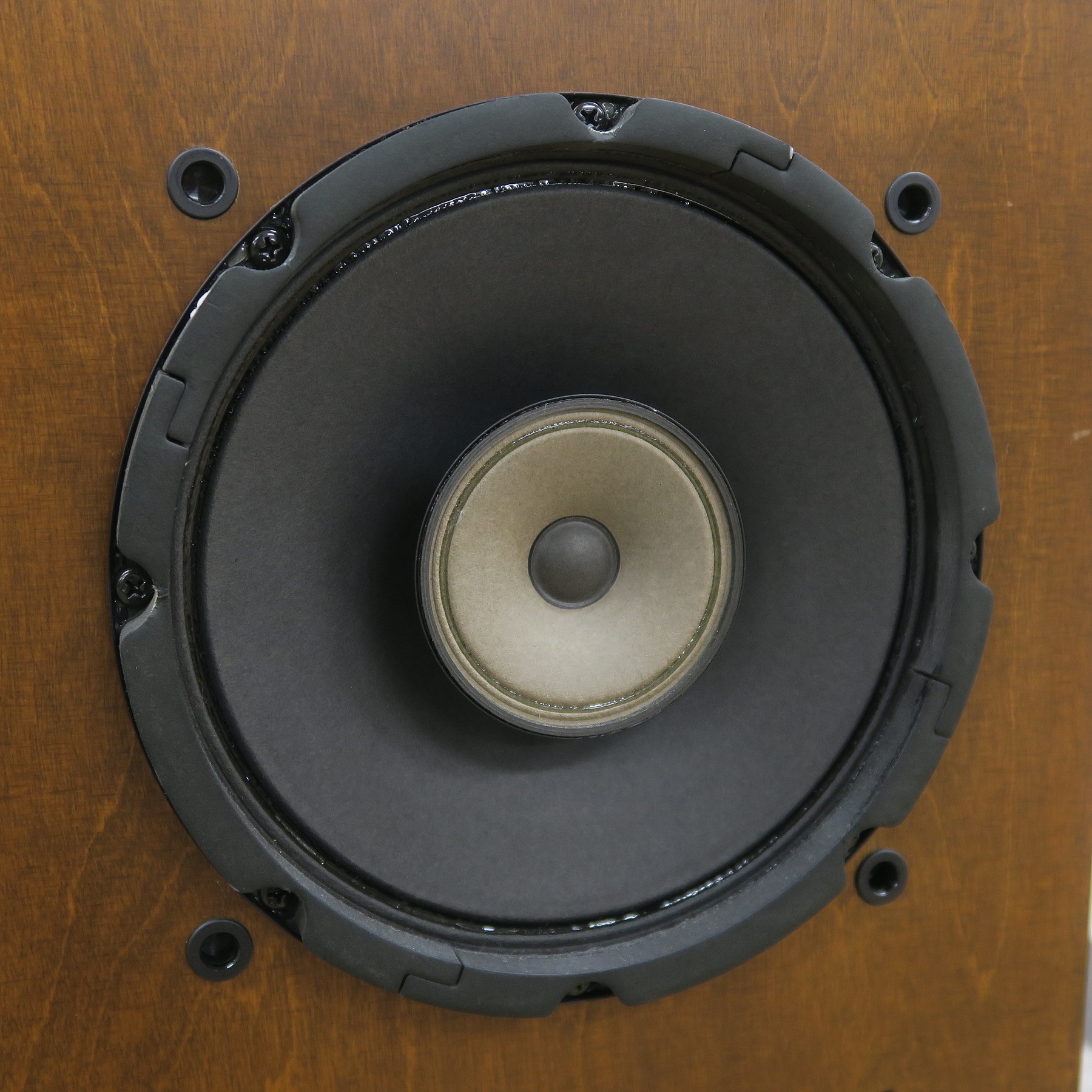 片側スピーカーフロントの左下にハガレ、天面に経年により木目の部分に塗装ワレが薄くあります。