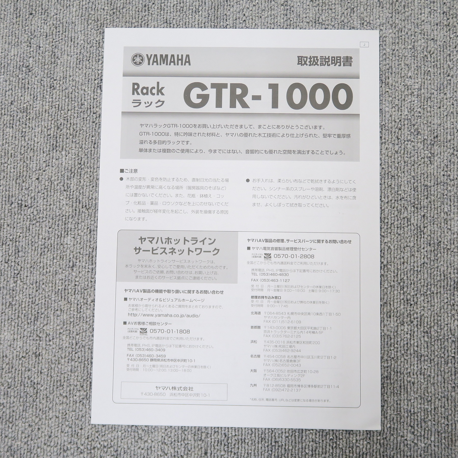 メーカー型番:YAMAHA GTR-1000