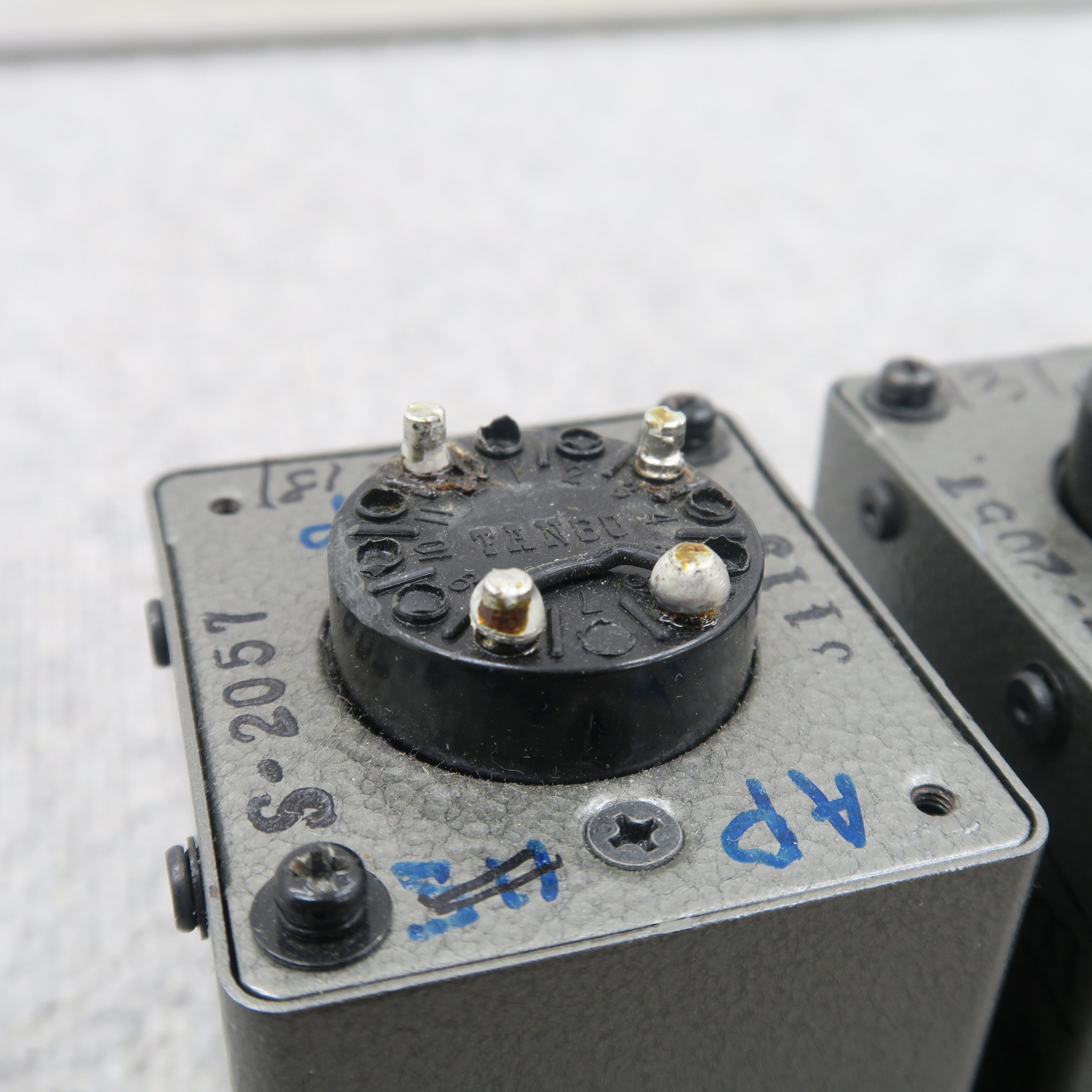 ハンダ跡があり、外装に記入が多数あります。