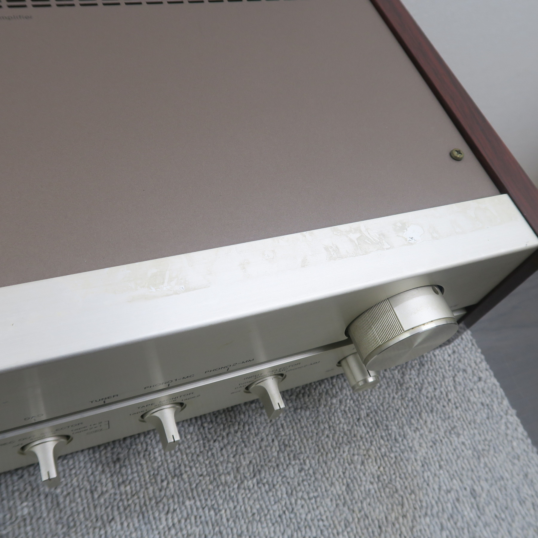 | 商品管理には万全を期しておりますが、展示中及び保管中に小さな傷などが付いてしまう可能性があります。予めご了承ください。※商品に固定されていない、電源コードやジャンパーなどの付属品は、純正品ではない可能性があります。可能な限り確認し記載する様に努めておりますが、純正品である保証は致しかねます。また、画像にある物が商品の全てです。付属品、外装状態などは、現状優先になりますので必ず画像で確認してください。商品の傷、日焼け、汚れなどの状態は、可能な限り記載するように努めておりますが、見落とすこともあります。商品状態の全てを完璧に記載することは現実的ではありません。ですので、商品の状態は必ず拡大画像で確認してください。拡大画像で確認できる傷、日焼け、汚れなどは、一切返品理由にはなりません。また、拡大画像でもわかりにくい程度の軽微な傷、日焼け、汚れなどを理由とした返品も一切受け付けておりません。画像にある物が商品の全てです。撮影していない内部や底部などの傷、汚れ、ビスの不備、ボンドの剥がれ。経年変化による劣化。これら、オーディオ機器として機能上問題のない箇所についても保証対象にはなりません。 |