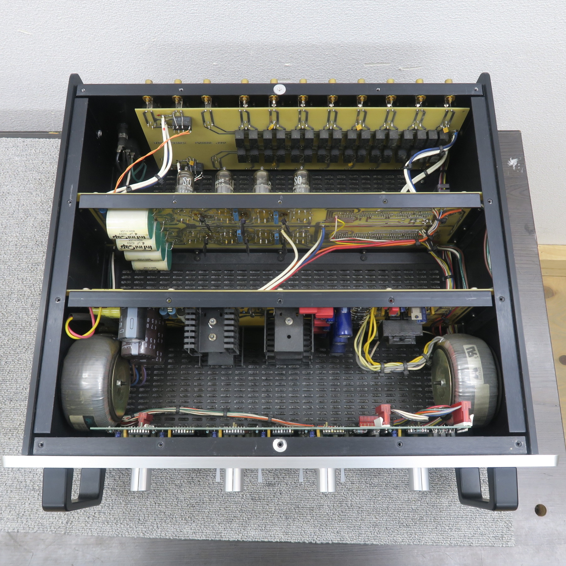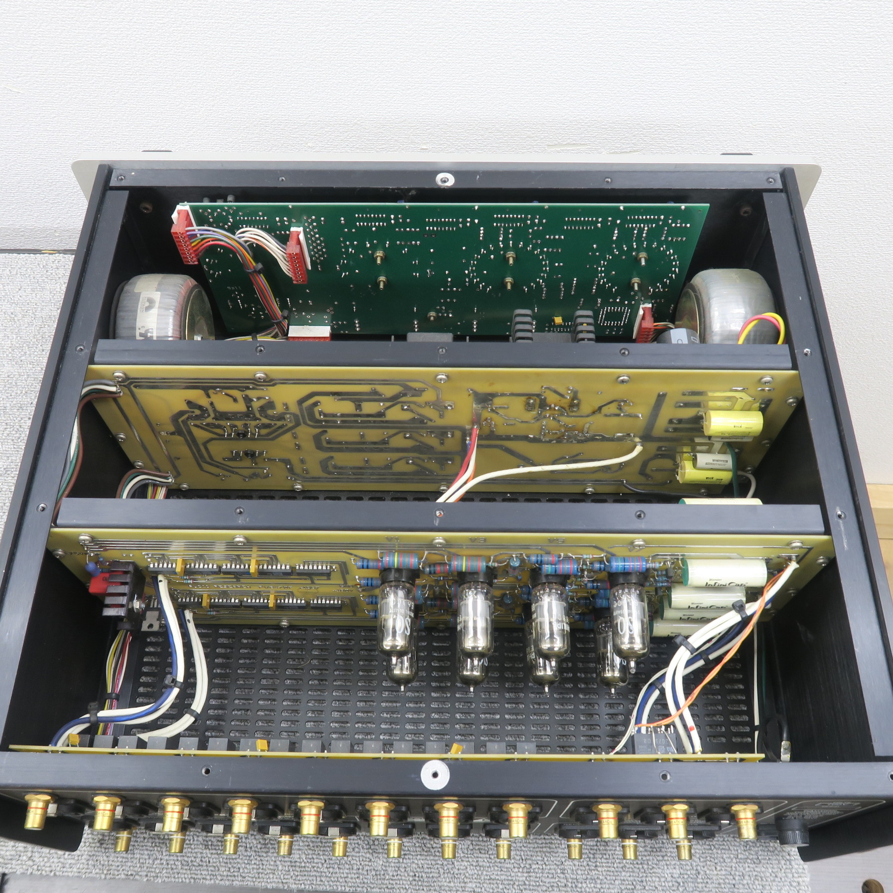 | 商品管理には万全を期しておりますが、展示中及び保管中に小さな傷などが付いてしまう可能性があります。予めご了承ください。※商品に固定されていない、電源コードやジャンパーなどの付属品は、純正品ではない可能性があります。可能な限り確認し記載する様に努めておりますが、純正品である保証は致しかねます。また、画像にある物が商品の全てです。付属品、外装状態などは、現状優先になりますので必ず画像で確認してください。商品の傷、日焼け、汚れなどの状態は、可能な限り記載するように努めておりますが、見落とすこともあります。商品状態の全てを完璧に記載することは現実的ではありません。ですので、商品の状態は必ず拡大画像で確認してください。拡大画像で確認できる傷、日焼け、汚れなどは、一切返品理由にはなりません。また、拡大画像でもわかりにくい程度の軽微な傷、日焼け、汚れなどを理由とした返品も一切受け付けておりません。画像にある物が商品の全てです。撮影していない内部や底部などの傷、汚れ、ビスの不備、ボンドの剥がれ。経年変化による劣化。これら、オーディオ機器として機能上問題のない箇所についても保証対象にはなりません。 |