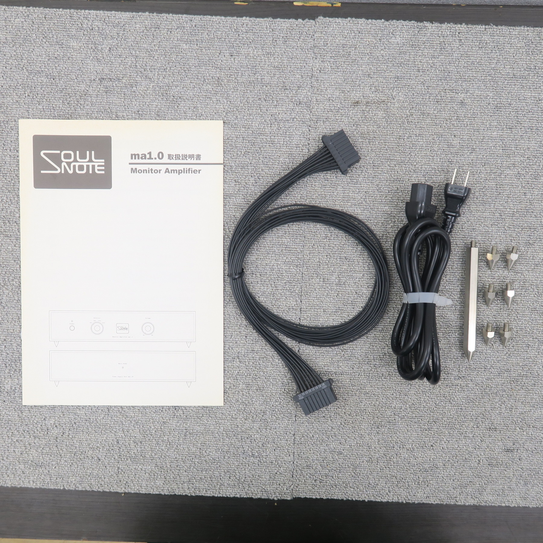 付属品:電源ケーブル・給電ケーブル・スパイク・長スパイク・説明書