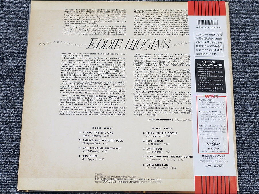 Eddie Higgins エディ・ヒギンスレコード LP 22YB-2017 @38701
